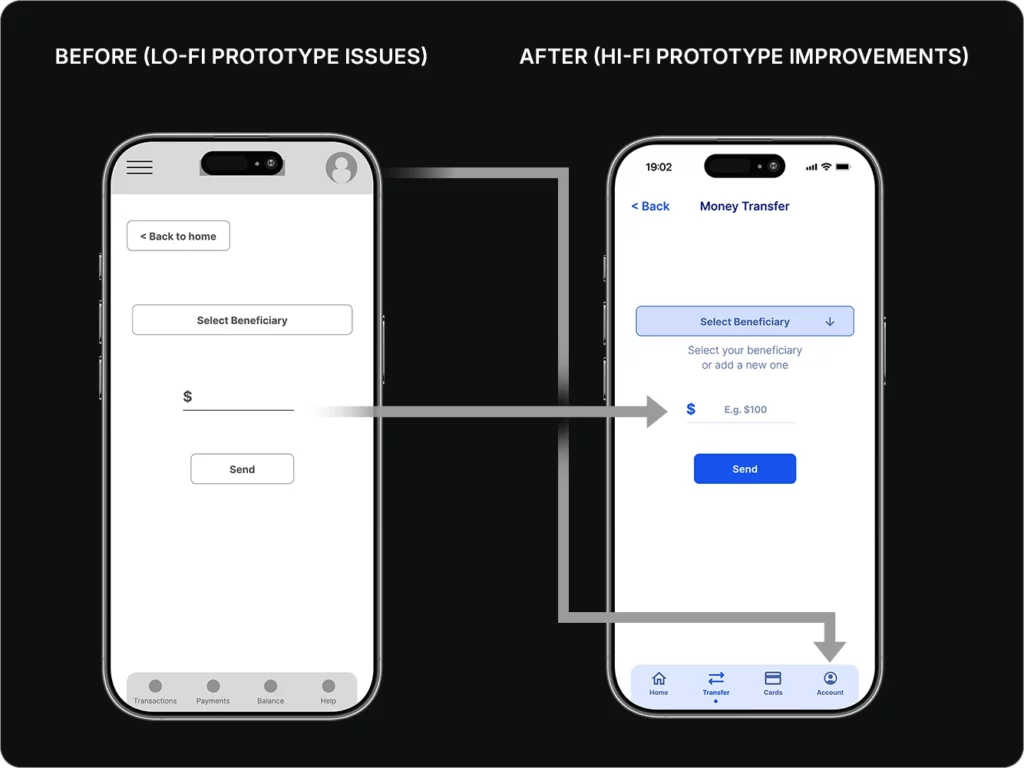 WyePay demonstrates a full UX process from research to high-fidelity prototype. Key challenges like simplifying transfers, improving profile management, and refining navigation were addressed through iterative testing. The final design delivers a seamless, intuitive experience tailored to user needs.