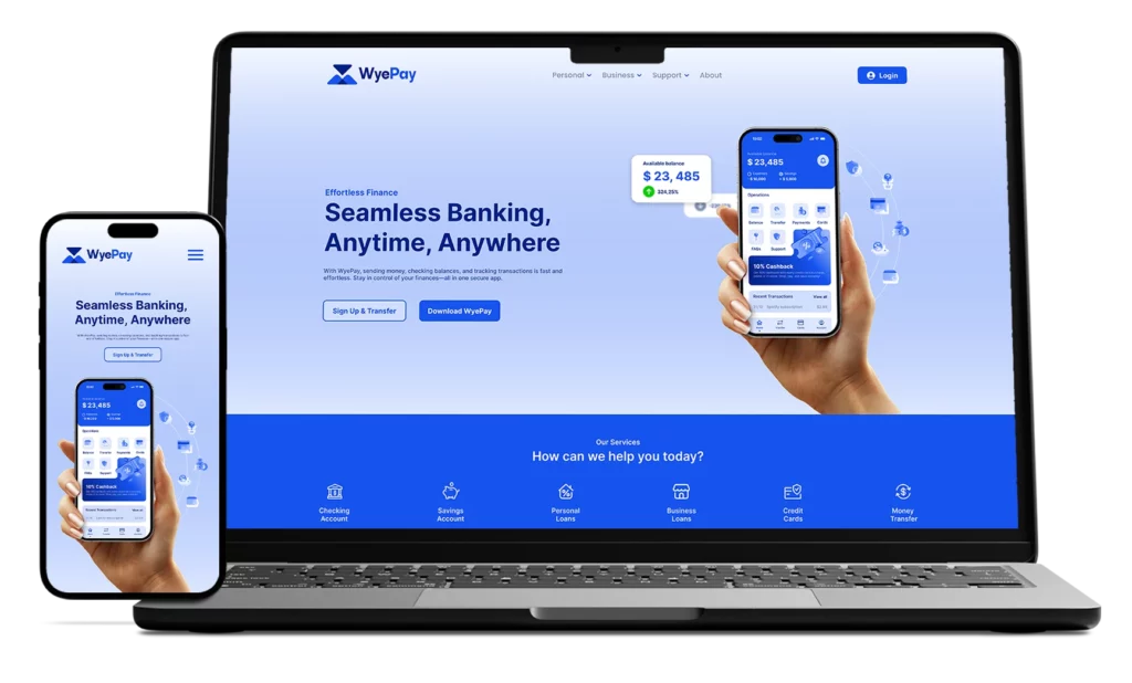 WyePay is a digital banking app designed to simplify everyday financial tasks such as transferring money, checking balances, and tracking payments. The goal was to create a fast, intuitive, and accessible app that reduces the need to visit a physical bank.