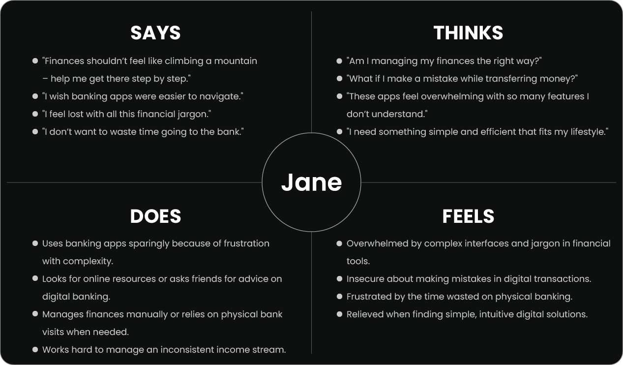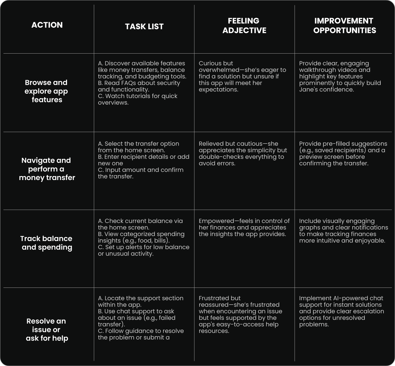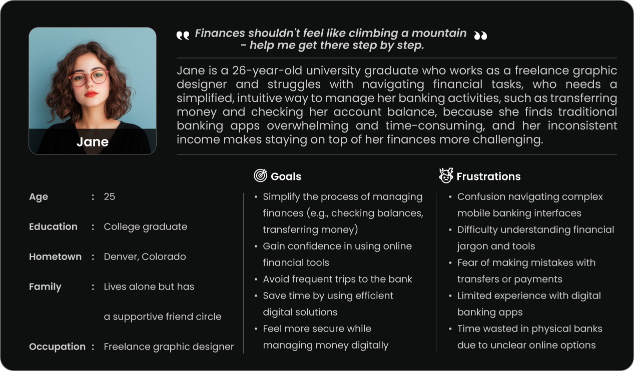 Key Insight: Users need a simple, accessible app that streamlines essential tasks like money transfers and account management.